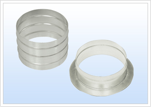 フレキシブルダクト同士を接続する場合に使用する部品です。 亜鉛メッキ鉄板(厚み0.6〜0.8mm)製 - 定着カラー(右)